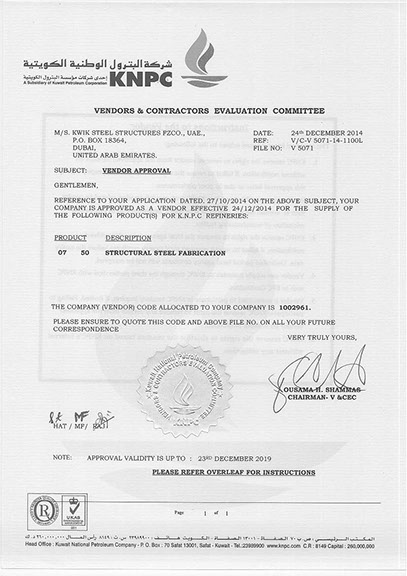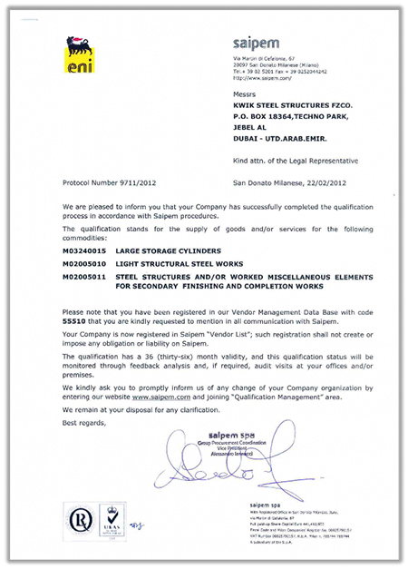 Petroleum Development Oman Certificate of Registration- Product Vendor
